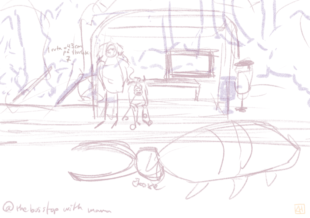 During the line art stage I definitely ran into a lot of troubles. First of all, balancing the level of detail in nature is something I struggle with a lot. I find buildings and interiors to be far easier than nature itself, as the cut off for detailing is more straight forward. I often find myself pondering how to depict trees and nature in a illustrative but detailed way during my walks in nature, but thus far I haven’t found a good middle ground. I’ll just have to keep making studies and practicing.