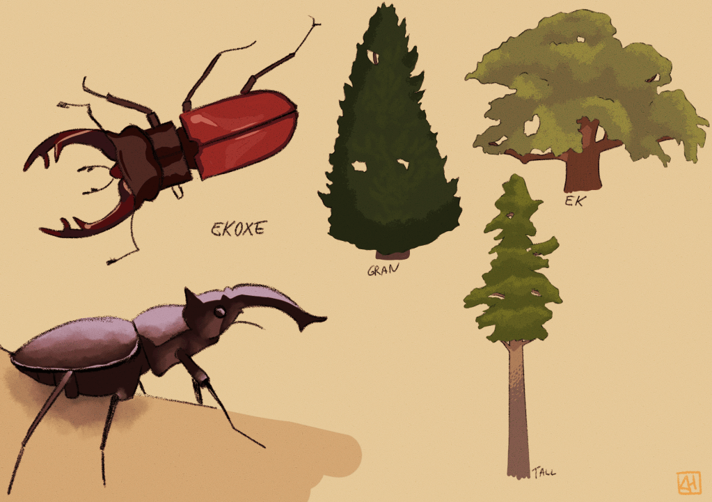 In retrospect, I probably should have done a few studies and thumbnails before deciding on the final composition, especially considering the fact that I didn’t have any clue how to draw trees or insects, let alone rhino beetles.